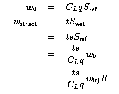 Finally, we need to have symbols for the dynamic pressure q (in lb/ft2) and the lift coefficient cL, so that we can equate the lift to the weight of the aircraft at tanker disconnect, which is the structural and aerodynamic "worst-case" condition. From this, we can write: