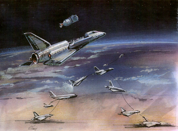 This painting is an artist's view of the Black Horse refueling, as seen from the KC-135 tanker.