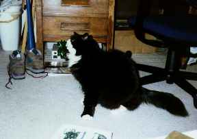 My cat, Cluebird, and his favorite Christmas present: a bow.